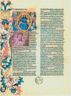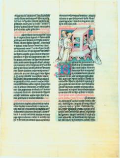 Süddeutschland, 1425 Pergament, 274 Bil.,-26,5 x 35 cm, zweispaltiger Text in gotischer Minuskel, zahlreiche Miniaturen
